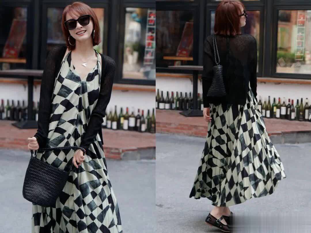 到了秋天这个凉爽的季节,很多人觉得吊带裙不适合再穿,于是就把它收起来了。其实,我们可以像吴昕一样,在吊带裙外面搭配一件外套来穿。
